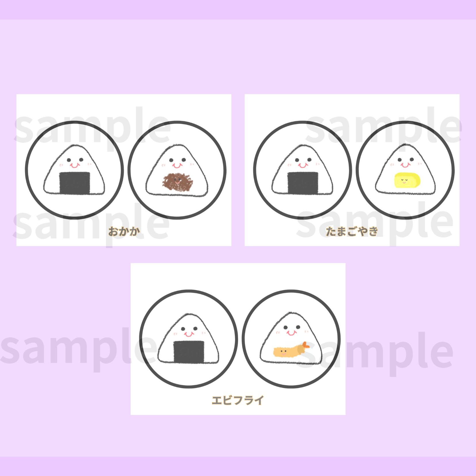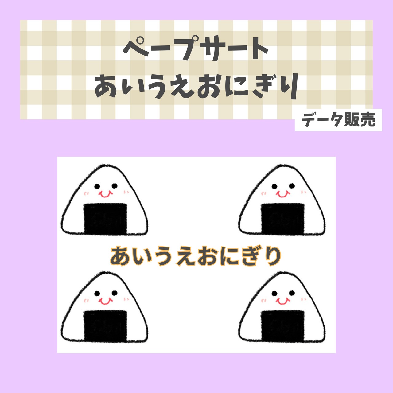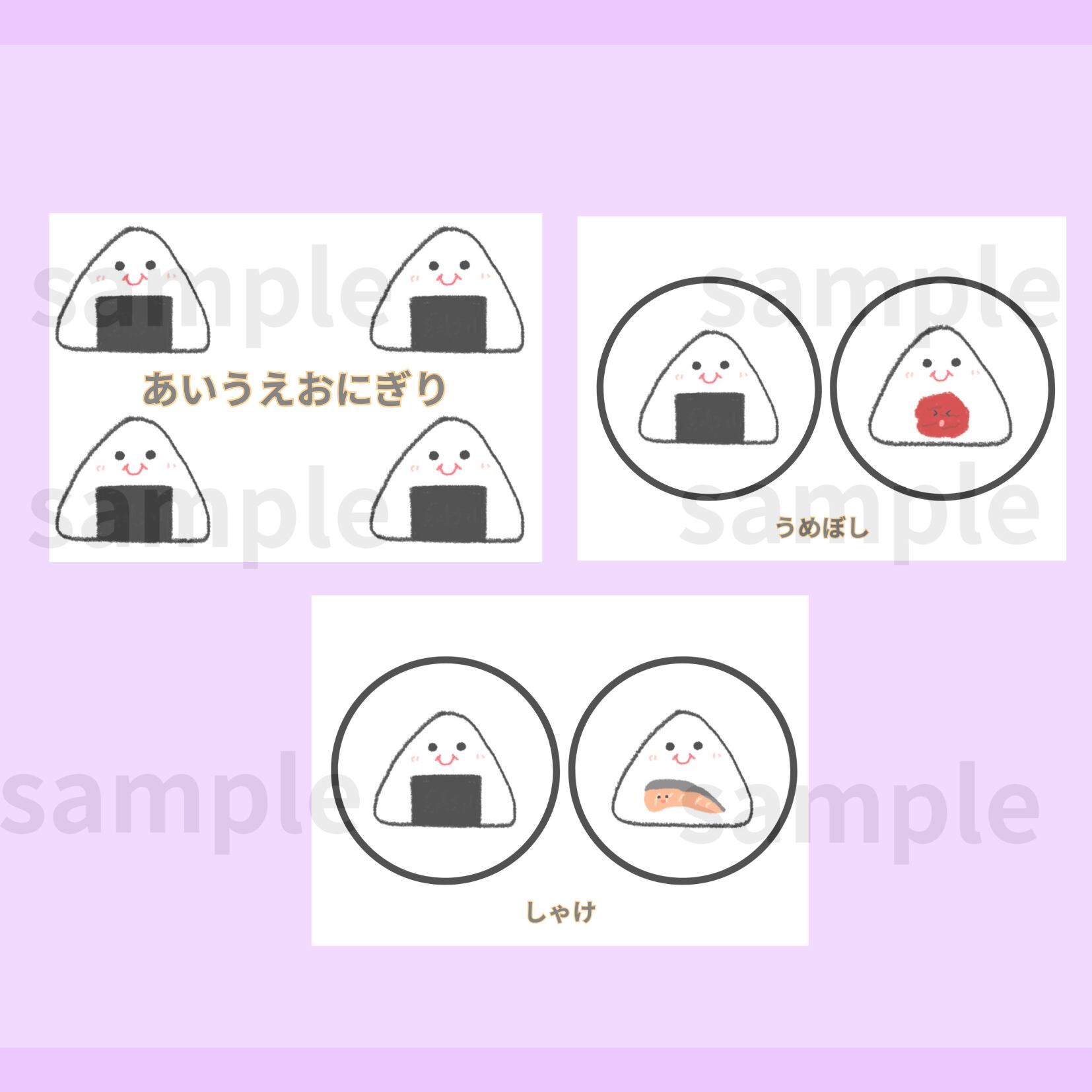 ペープサートとして使える【あいうえおにぎり】のイラストデータ販売です^ ^